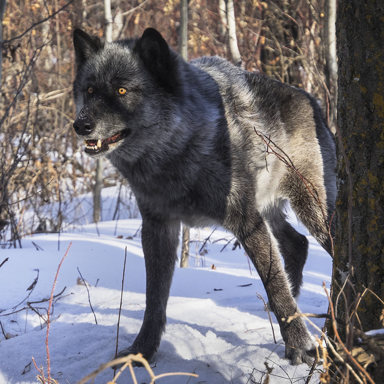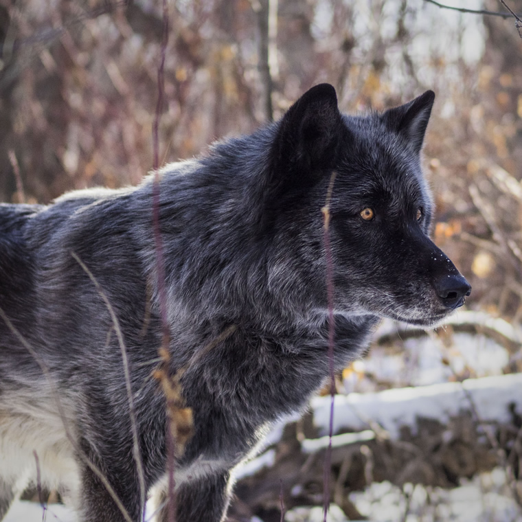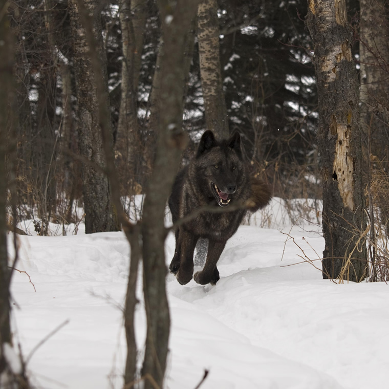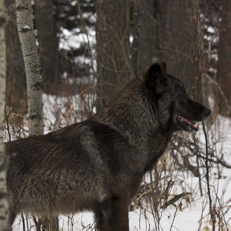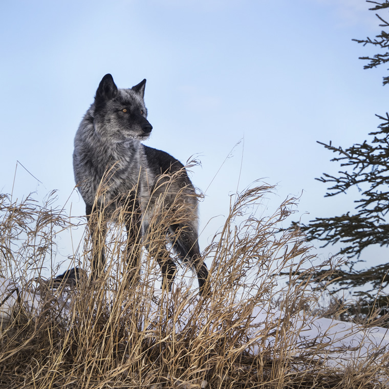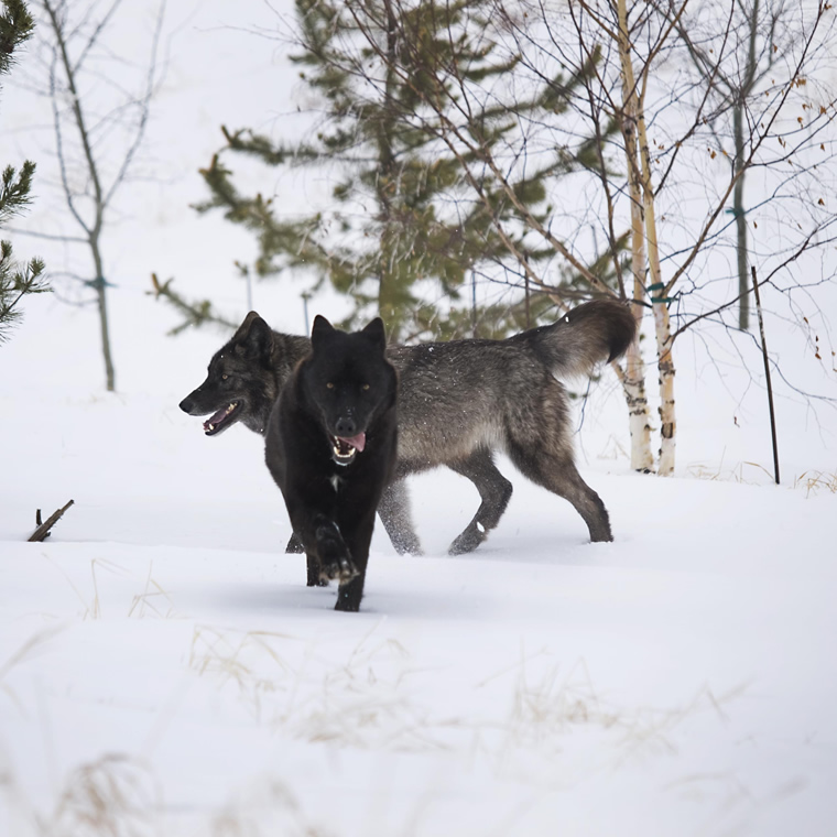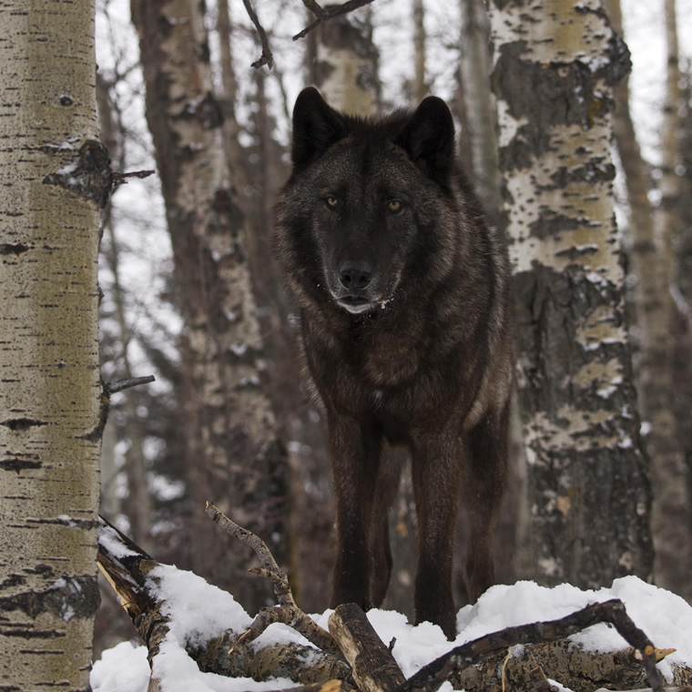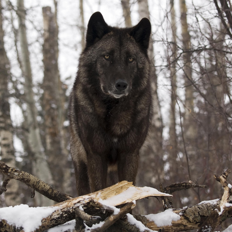 Often used to play the big bad wolf or the classic horror film beast, our black wolves have been featured in many productions around the world. As a black wolf gets older, its fur colour changes to have a more silver look. Fun fact: About 30% of wolves in Alaska are black.