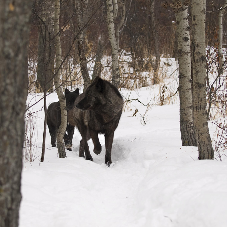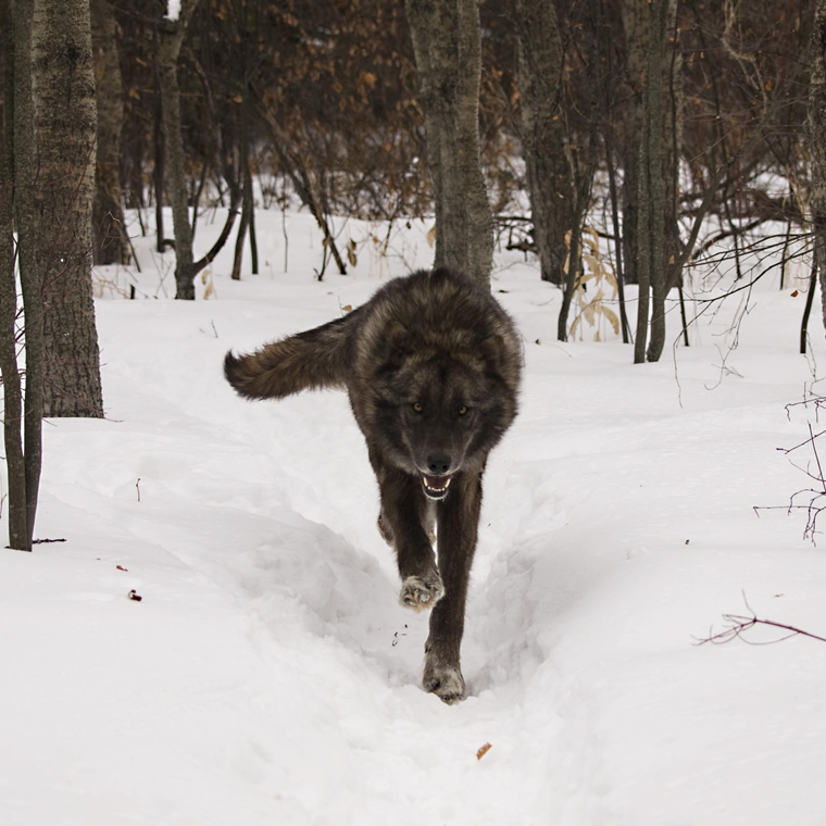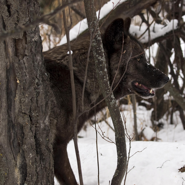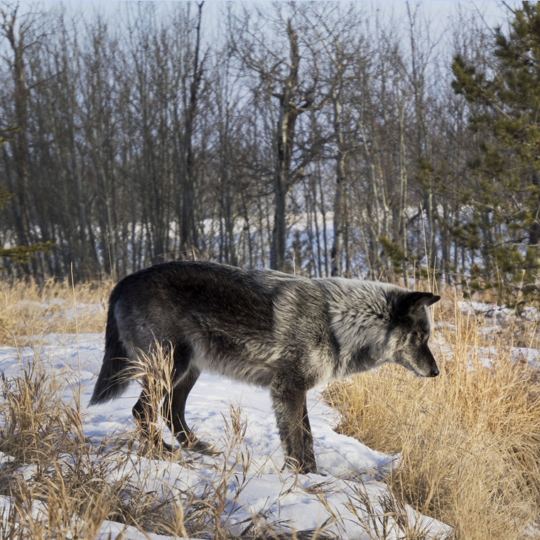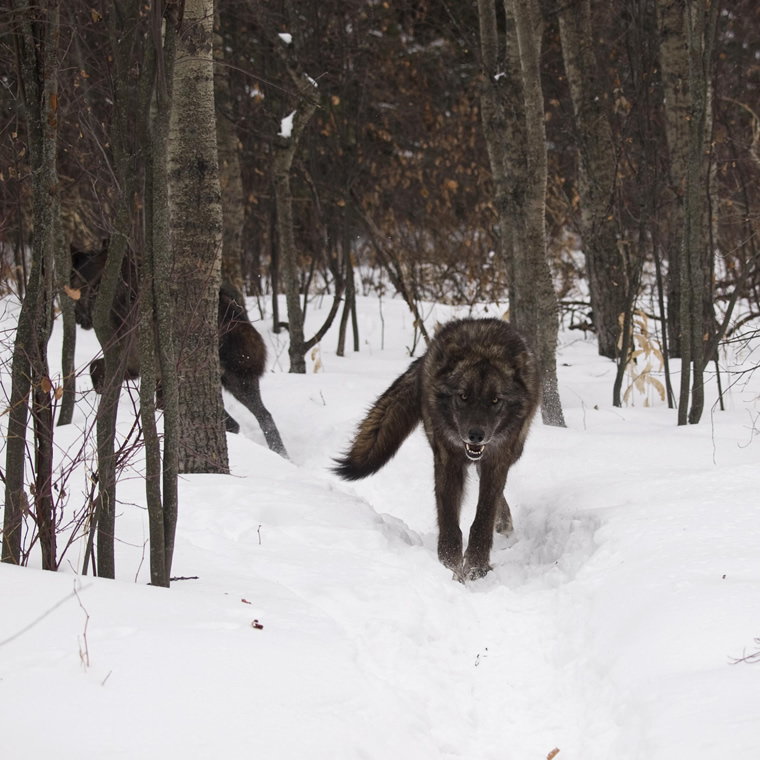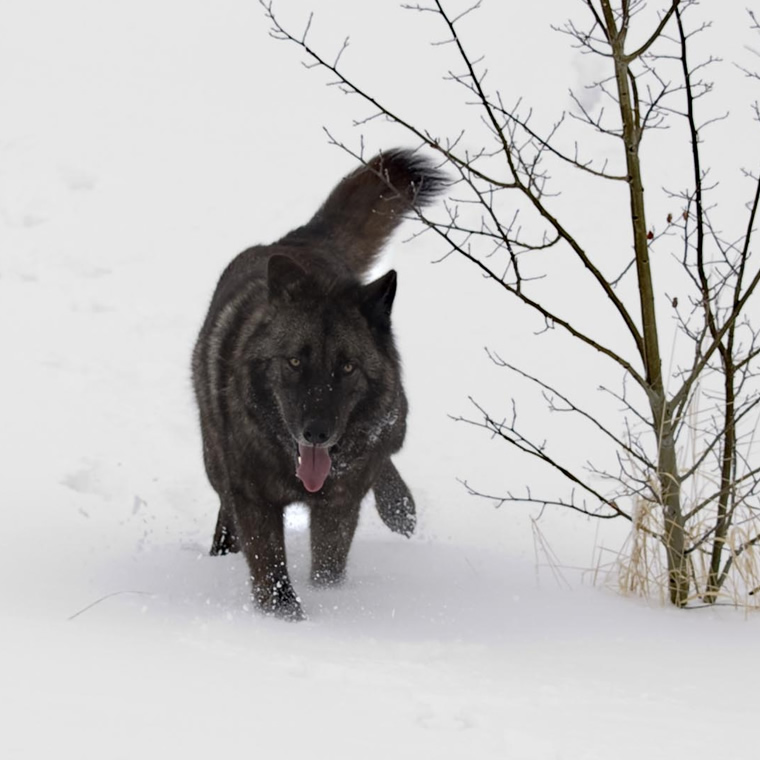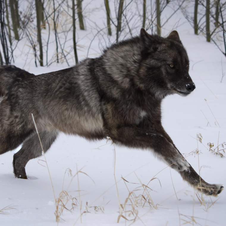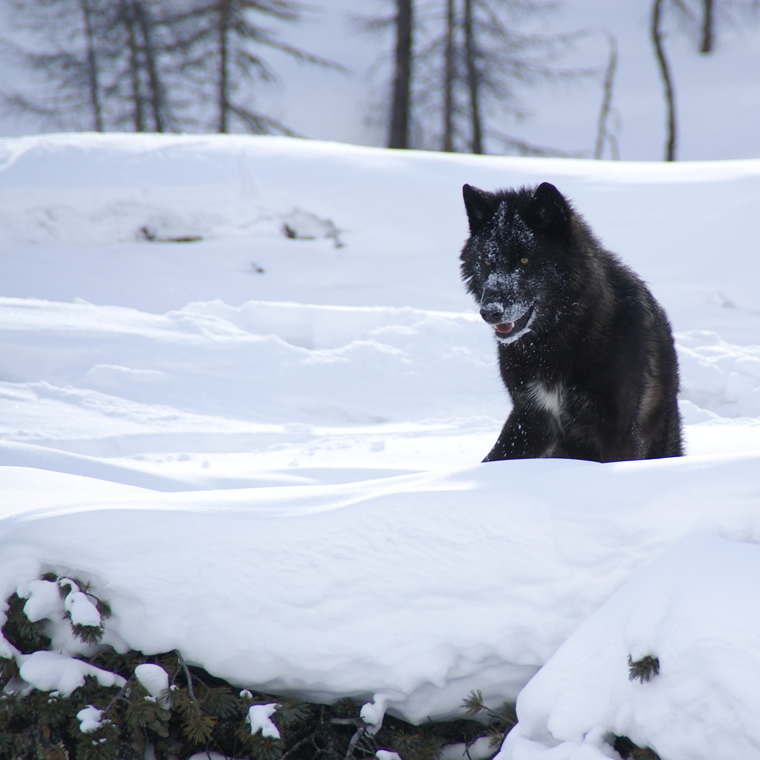 Often used to play the big bad wolf or the classic horror film beast, our black wolves have been featured in many productions around the world. As a black wolf gets older, its fur colour changes to have a more silver look. Fun fact: About 30% of wolves in Alaska are black.